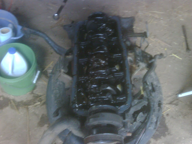 Ill update as i buy, first thing first to to update with pictures of the dirty ole' starter block. lol they were taken in the dark sorry for the poor quality, there is an easy 1/4 inch of sludge on EVERYTHING within the heads and block.