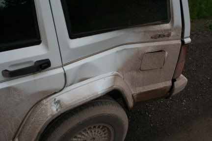 Don't ask me how the window didn't pop. You can even stick your finger up between the window and quarterpanel. Anyway, we solved the problem by buying a '94 Grand Cherokee.