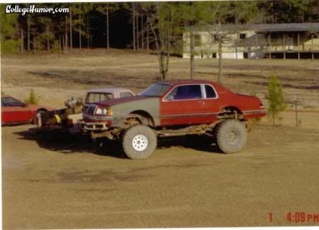I would love to drive it, plenty of dirt trails around here to get into trouble with something like that. And being a Chebby, when it gets bent up I wouldn't feel bad at all. Wonder what running gear they used, never checked really on those but I have seen pics of a Cougar done with a Bronco set up under it.