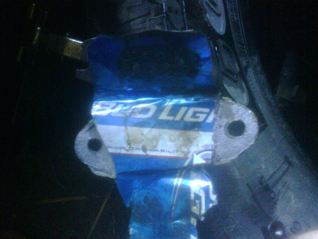 Cant Help but laugh..... June 06, 2010, 09:09:41 PM So i tried taking the TB off my tubular intake for the third time.When i was un successful I decided to just take off the EGR and got a good laugh when it came off and un folded the "block" to it. When they deleted it they must have been thinking it was a good idea and how funny it would be when someone else took it apart...A BUD LIGHT BEER CAN AS A GASKET/BLOCK!!!!! Quote Selected