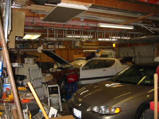 you guys are lucky, i get to use my dad's "vanity" garage.  i call it that b/c you really don't have room to do !  and my apartment complex has nothing not even those rentable garages some places do.  it's in there now and with the front jacked sky high (to get the aod out and the new one in) the back bumper has been sing the back wall a bit and the door just barely closes with "scooting" room infront of the car.  i guess they built it with econoboxes in mind.  my dad's 06 sonata fits bumper to bumper even.  plus he's got a lot of equipment on the sides that he doesnt need. (lives on a tiny residential lot, mostly on a slope yet he still has his tiller and junk box, i mean tool box and a lot of other useless stuff) he has a company van that has ALL his tools in (prolly 10's of thousands of dollars worth of tools and manuals - works on lift trucks) and a bunch of other junk in there.  i usually do my stuff in a parking lot with drug dealers walking around me (keep a glock g20 just out of sight in case ;) ) and my trunk serves as my tool box... go figure.