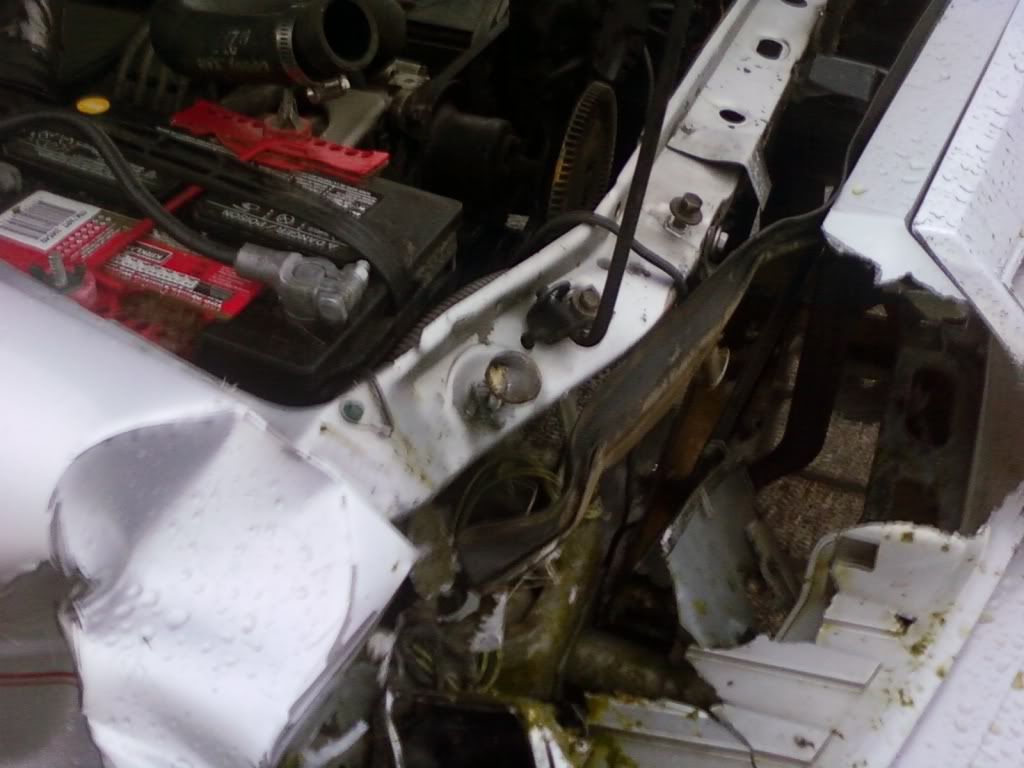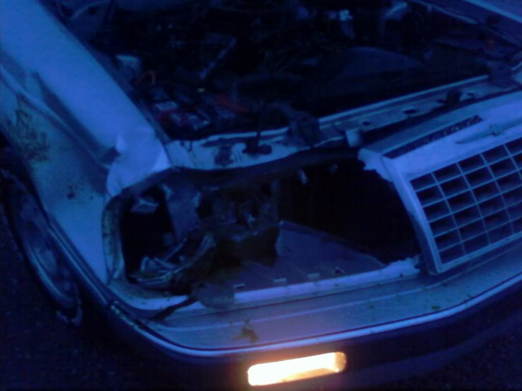 T-Bird: 1 Deer: 0 June 20, 2009, 09:39:15 AM Boy do I have a story to tell. About 3 hours (4:00am) ago I was on the highway heading north to visit my mother for the weekend, the road is fairly flat and straight and double lane so the speed limit is 110 (70mph). Okay I'm not really in a story telling mood right now as I have other things on my mind. I caught a deer out of the corner of my eye, he was heasitating to cross the road so I started slowing down but alas it was too late, I swerved to the left to avoid and applied some even brake pressure but the ran right in front of me, I think I hit him going about 90km. It all happened so quickly in about 3 seconds in this order:-saw deer-braked and swerved-bang-me swearing-pulled over to the side of the road, radiator starting steaming-shut car off-swear some more-throw hazards onYeah kind of like that. I got out and inspected the damage, still furious at the deer I ran over and kicked it a few times and said the most unholiest of words you can think of.I need a new hood, new fender, new header panel, new lights (etc), new rad support, new rad, new fan, new fan shroud and a few other things.And I know you all want them so here they are:I took the rad out as I needed something to do between the chain smoking and the cursing, also I had to wait 2 hours for my ride.Jerry I think I'm gonna need some advice on this one. Quote Selected