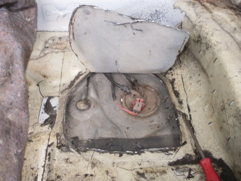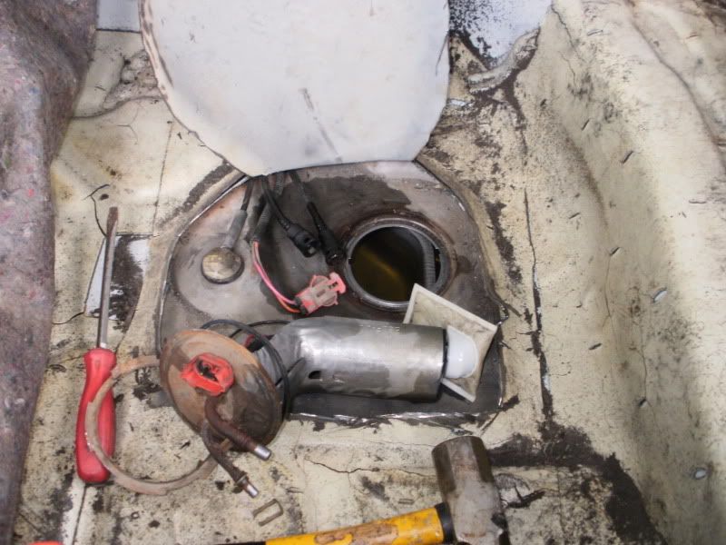 It really looks like there should be an access cover there from the factory. Of course, dropping the fuel tank is ridiculously easy on these cars. (Especially when you don't have any tail pipes like me)